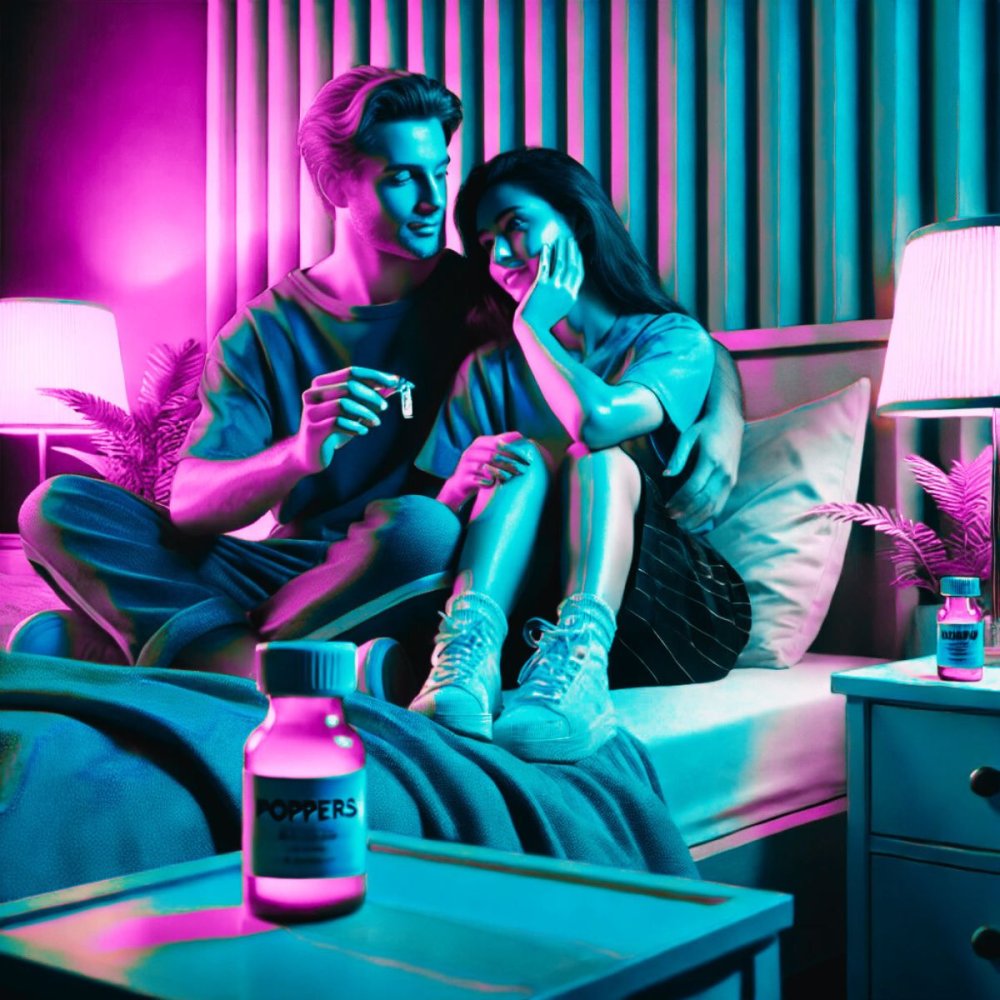 En raison de ces propriétés, le poppers est souvent utilisé pendant les rapports sexuels -- notamment juste avant l'orgasme, car son effet peut augmenter l'intensité de l'expérience. L'inhalation de poppers juste avant l'orgasme peut approfondir le plaisir physique et psychique, ce qui explique pourquoi il est si populaire non seulement dans la communauté LGBTQ+, mais aussi parmi les couples hétérosexuels.
